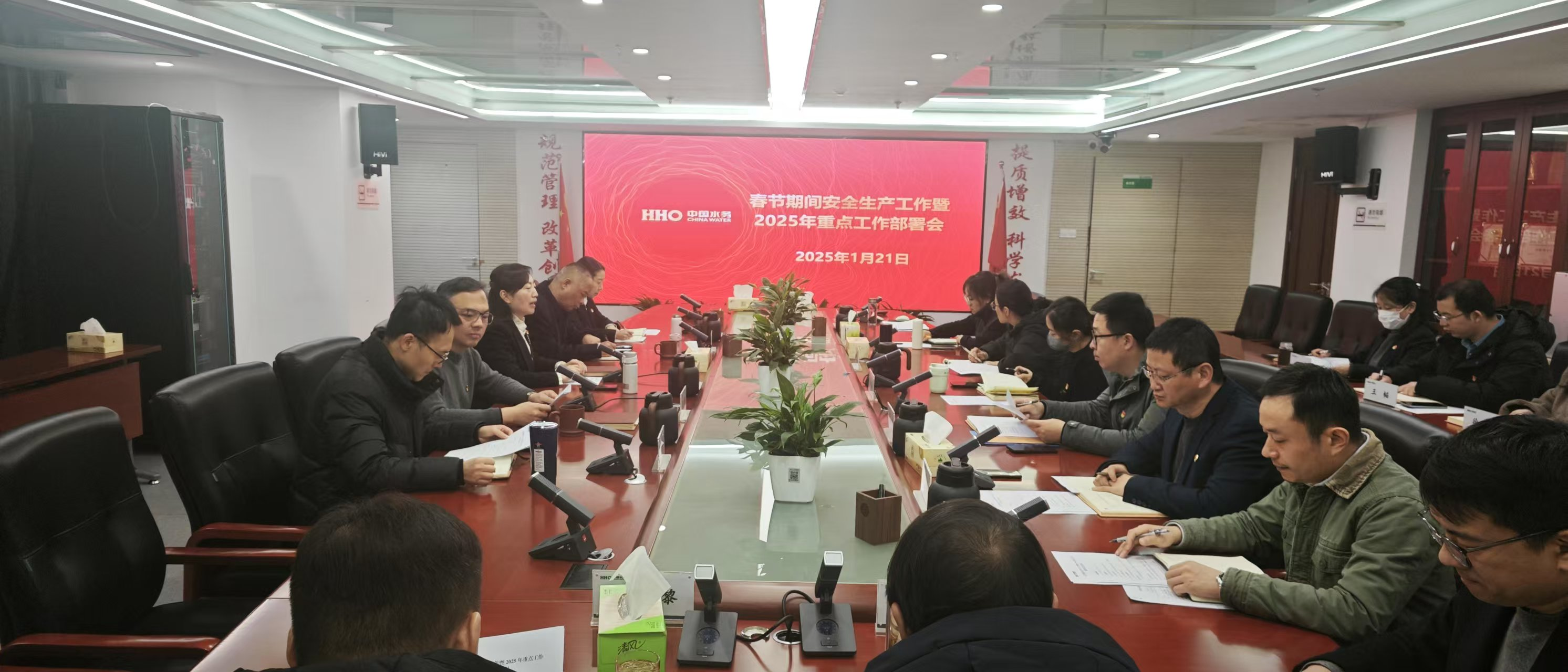华东区域总部召开春节期间安全生产工作暨2025年重点工作部署会,就加强值守,做好应急管理工作,严格执行领导干部到岗带班等方面进行再强调。区域总部各子公司严格落实供水调度、水质检测、管网抢修、客服热线等制度要求,根据气温、水雨情监测分析和研判,不断强化供水设施的巡查维护力度,全力确保节日期间供水工作平稳有序、正常运转。