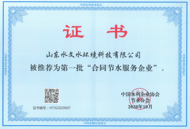 近日,中国水利企业协会印发《关于推荐第一批合同节水服务企业的公告》,经专家评审,推荐山东水文水环境科技有限公司等8家单位为“第一批合同节水服务企业”。